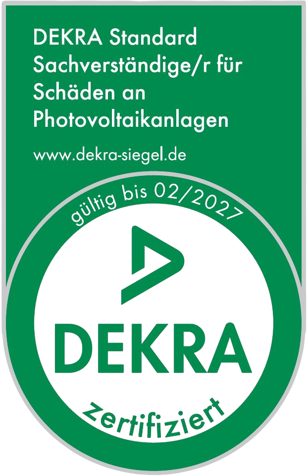 Sachverständiger für Schäden an Photovoltaikanlagen mit offizieller DEKRA-Zertifizierung